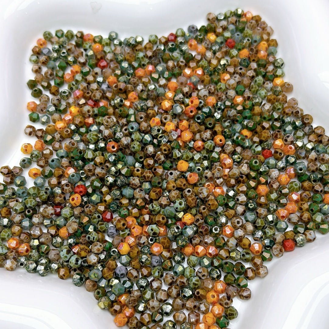 A1001 ピカソシリーズカットダブルポイントビーズ ✦ レトロ模様のハンドメイド素材 ✦ アクセサリー作りに最適