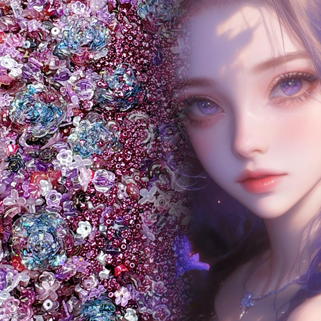 A1029 オーロラパープル系 アクリルフラワービーズ キラキラDIYアクセサリーパーツ ハンドメイド素材
