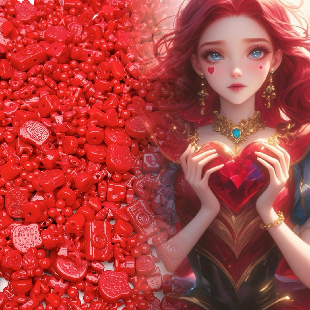 A1031 レトロレッド アクリルビーズ ハートミックス DIYアクセサリーパーツ ハンドメイド素材