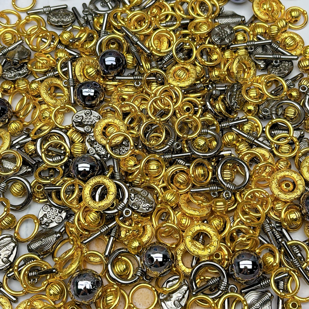A836 ガンブラック×ゴールド アクリルビーズミックス|個性派メタル風ハンドメイド素材