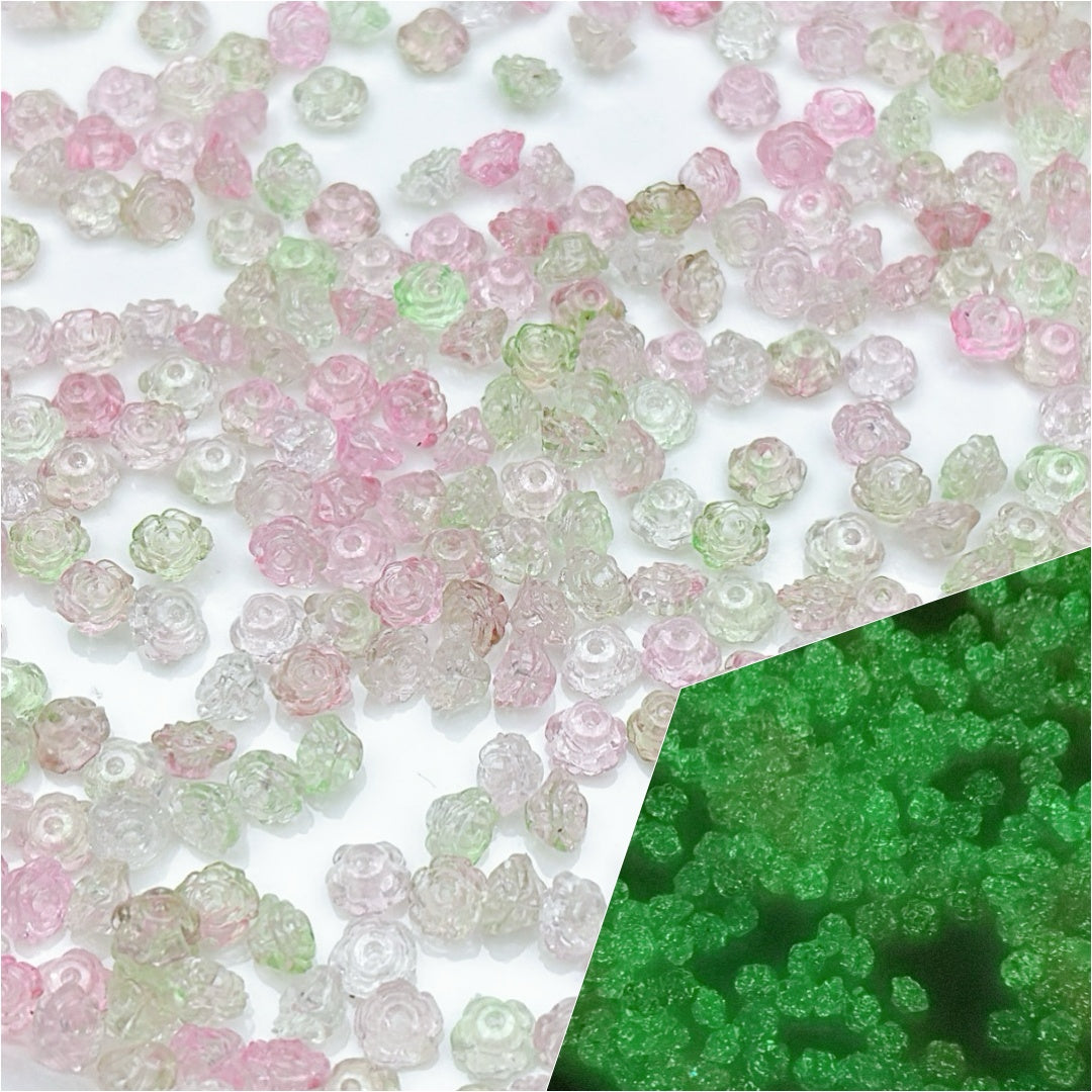 A854 夜光アクリルミニローズパーツ|軽やかなフラワーアクセサリー素材